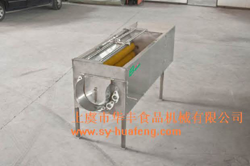 概述:(設備原理)物料在水中經氣泡作用呈翻滾并充分散開,與旋轉的大毛刷輥充分接觸,使毛發類雜質粘附大毛刷上。同時,產品在水流的作用下不停向前運動,通過輸送帶送至池外旋轉的小毛刷輥上,把殘留在產品中的毛發類雜質粘住,并將產品送入下一工序。改設備的電機及不銹鋼水泵均采用進口名牌產品,其它部件均采用不銹鋼或食品級工程塑料制造,完全符合食品衛生要求。毛刷輥國產和進口配置任意選擇。毛刷輥和輸送帶可快速拆裝,清洗方便,無衛生死角。可根據客戶的要求定制:,MQJ-50和 MQJ-75,產量分別是每小時1噸和每小時1.5噸。 ![]() |