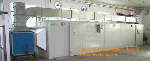 | 概述:1、設備采用巖棉夾芯板,能耗小,大大降低生產成本。 2、風機采用高效多翼式離心風機,送風和抽風相結合方式。 3、改設備能耗低,自動化程度高,可根據物料不同做成單層或多個串聯。 4、隧道式果蔬烘干機,采用列管式三回程無煙熱風爐,由高溫高濕軸流風機將熱風直接吹向隧道內物料,物料放在各層料車每層的托料盤上,物料從隧道的末端進入隧道,從隧道靠近熱風爐的一側出料,出一車干料,另一端進一車濕物料,做到循環間斷烘干。 |